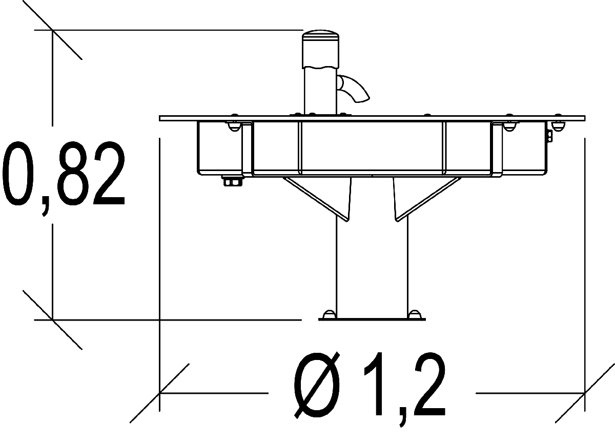 Modulets dimensioner er som følger: 1,20 m i længden, 1,20 m bred, 0,82 m høj.