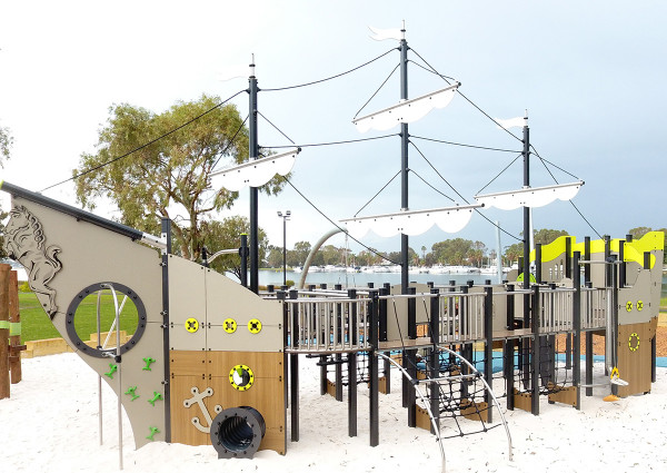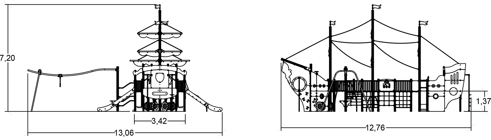 Enhjørning - Kæmpe bådlegeudstyr med rutsjebane, klatreaktiviteter, netstrukturer og legepaneler - J1961