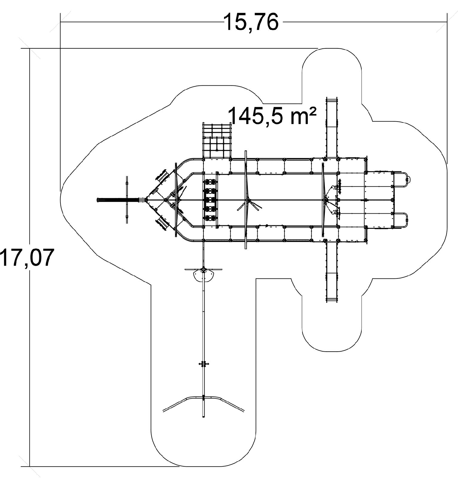 Modulets dimensioner er som følger: 13,09 m i længden, 12,69 m bred, 6,90 m høj. Den frie faldhøjde (HCL) er 1,70 m.
