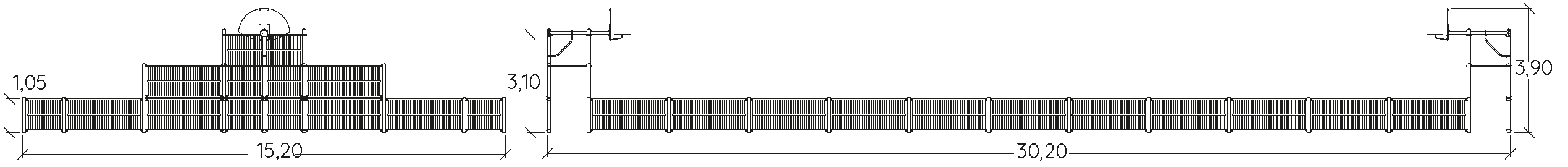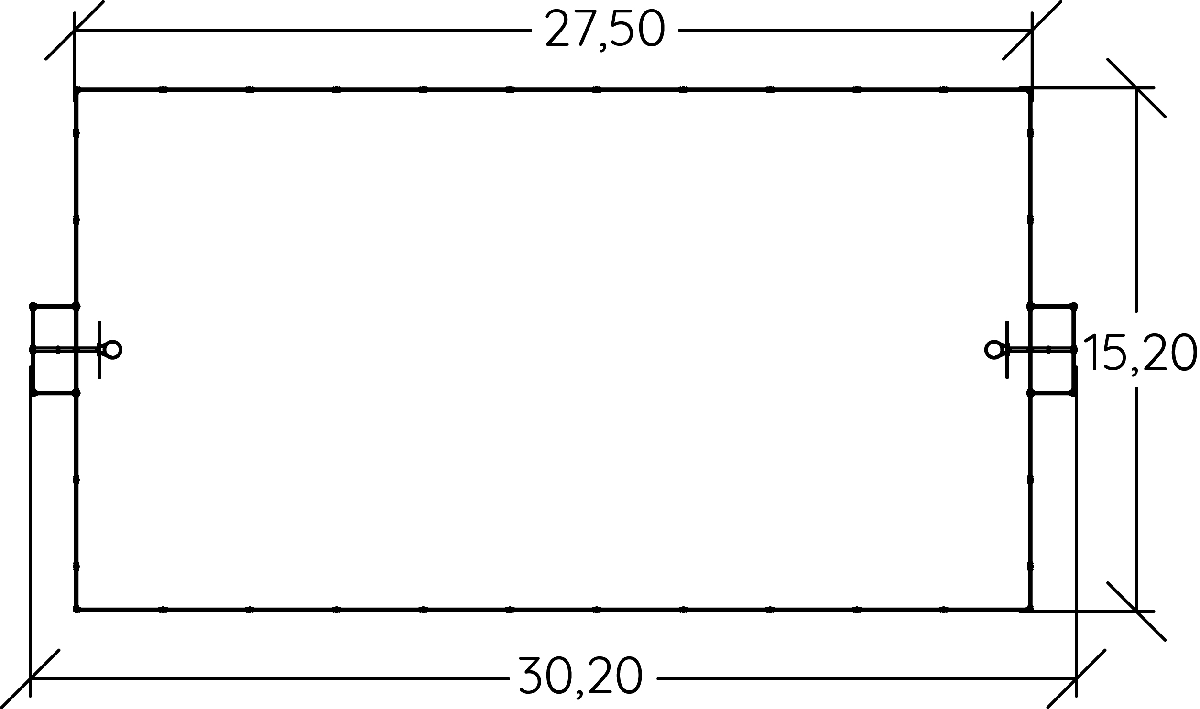 Modulets dimensioner er som følger: 30,20 m i længden, 15,20 m bred, 3,90 m høj.