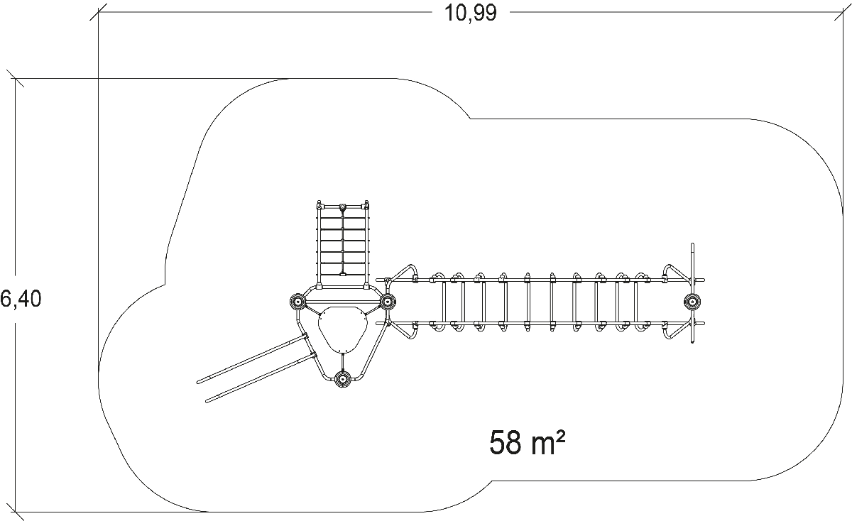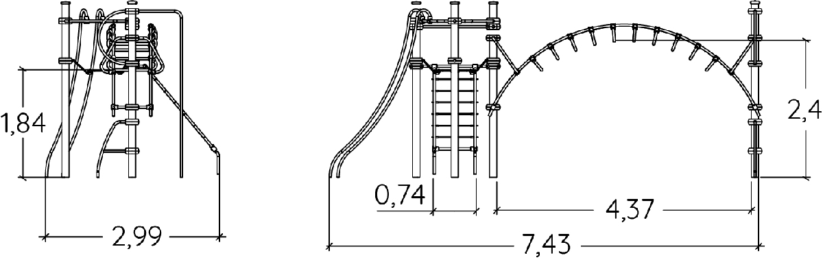 Multilegeanlæg i metal med balance- og klatreaktiviteter, Speed rutsjebane og brandmandsstang - J2535-M