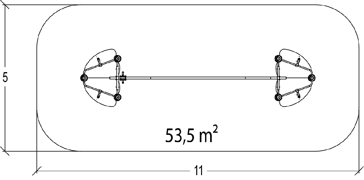 Modulets dimensioner er som følger: 7,40 m i længden, 3,30 m bred, 3,00 m høj. Den frie faldhøjde (HCL) er 1,00 m.