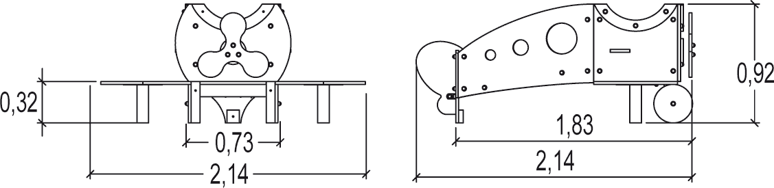Modulets dimensioner er som følger: 2,16 m i længden, 2,05 m bred, 0,93 m høj. Den frie faldhøjde (HCL) er 0,60 m.
