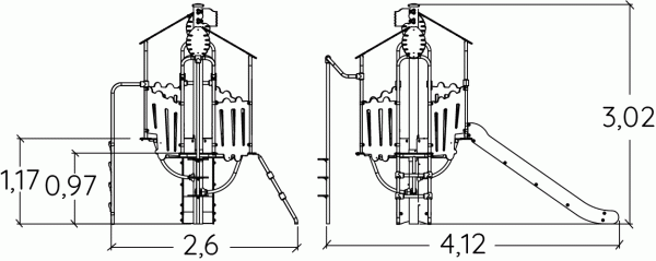 Modulets dimensioner er som følger: 4,12 m i længden, 2,60 m bred, 3,02 m høj. Den frie faldhøjde (HCL) er 1,30 m.