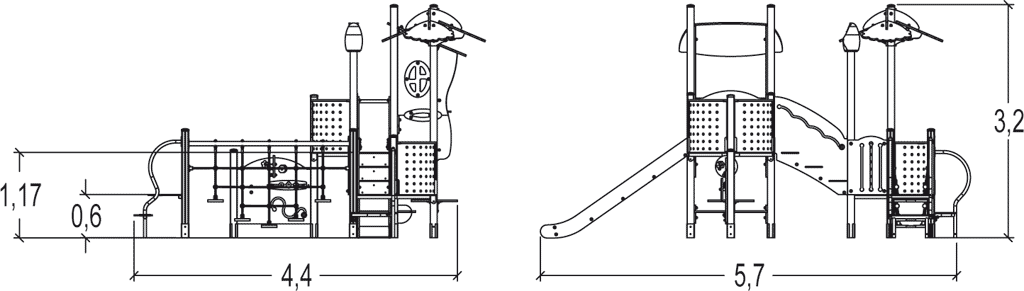 Modulets dimensioner er som følger: 5,88 m i længden, 4,81 m bred, 3,19 m høj. Den frie faldhøjde (HCL) er 1,17 m.