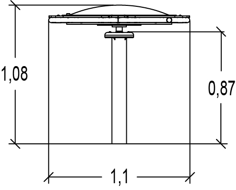 Modulets dimensioner er som følger: 1,10 m i længden, 1,10 m bred, 1,08 m høj.