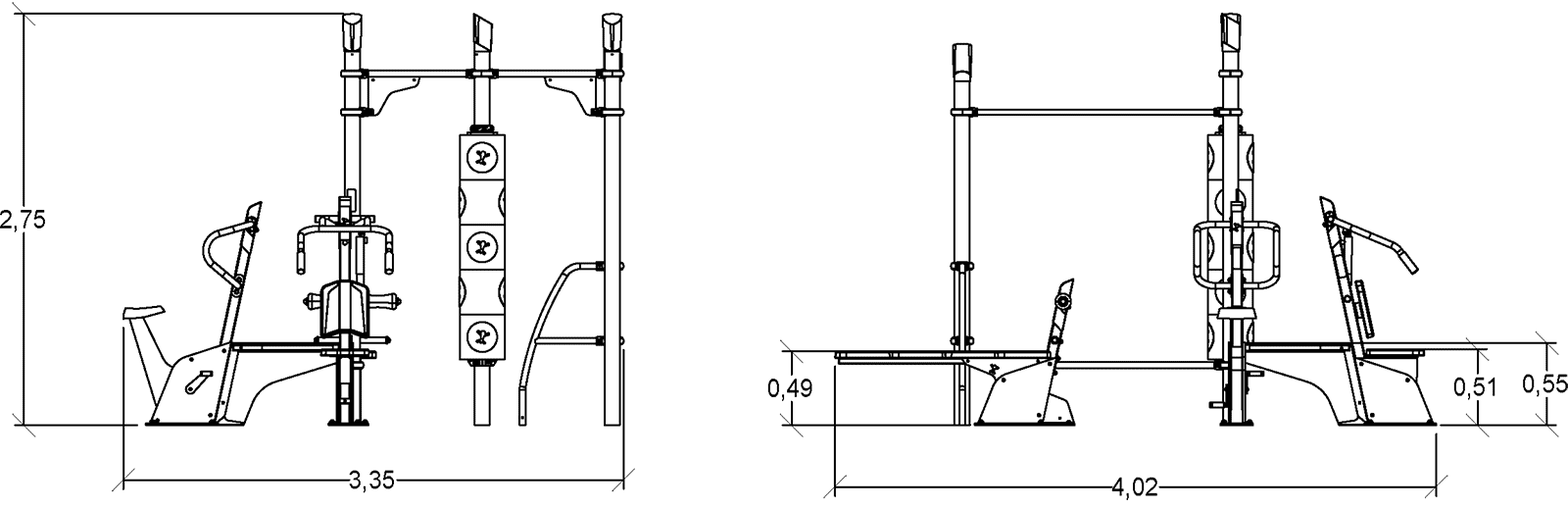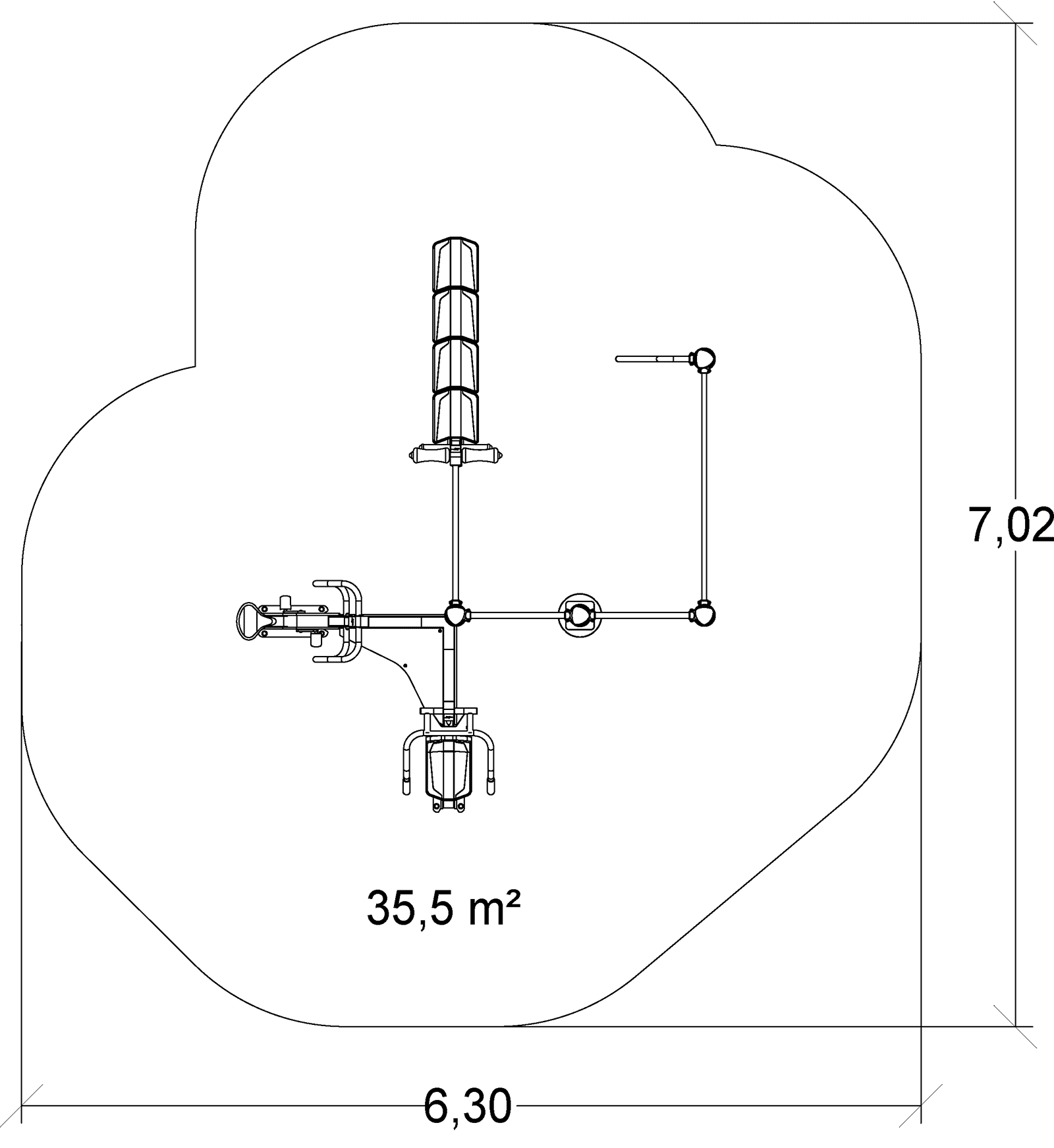 Modulets dimensioner er som følger: 4,02 m i længden, 3,35 m bred, 2,75 m høj. Den frie faldhøjde (HCL) er 1,10 m.