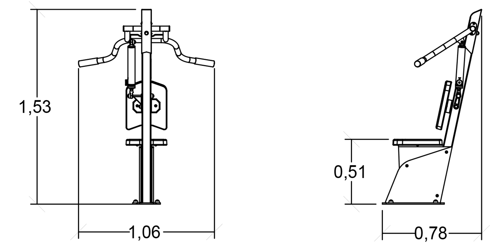 Modulets dimensioner er som følger: 0,78 m i længden, 1,06 m bred, 1,53 m høj. Den frie faldhøjde (HCL) er 0,50 m.