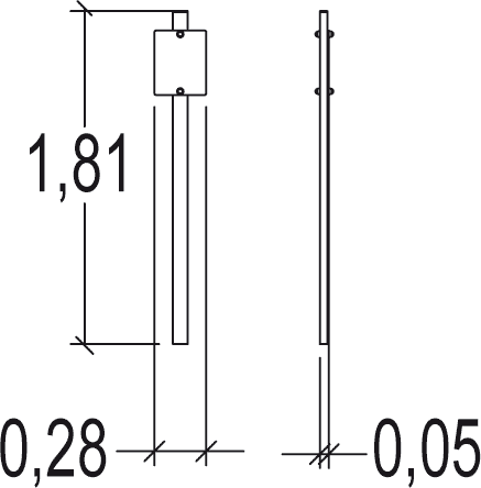 Modulets dimensioner er som følger: 0,28 m i længden, 0,05 m bred, 1,80 m høj.