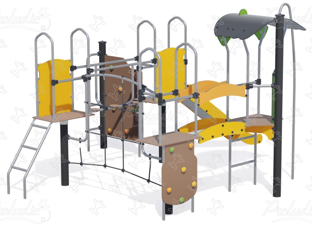 Multilegeanlæg med rutsjebane, klatrevæg og klatreaktiviteter - J3875