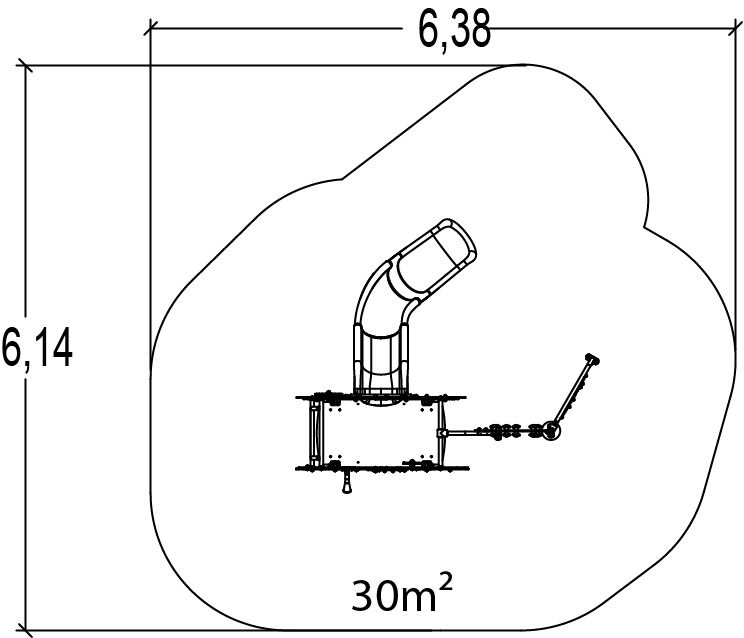 Modulets dimensioner er som følger: 3,22 m i længden, 3,00 m bred, 2,50 m høj. Den frie faldhøjde (HCL) er 1,80 m.