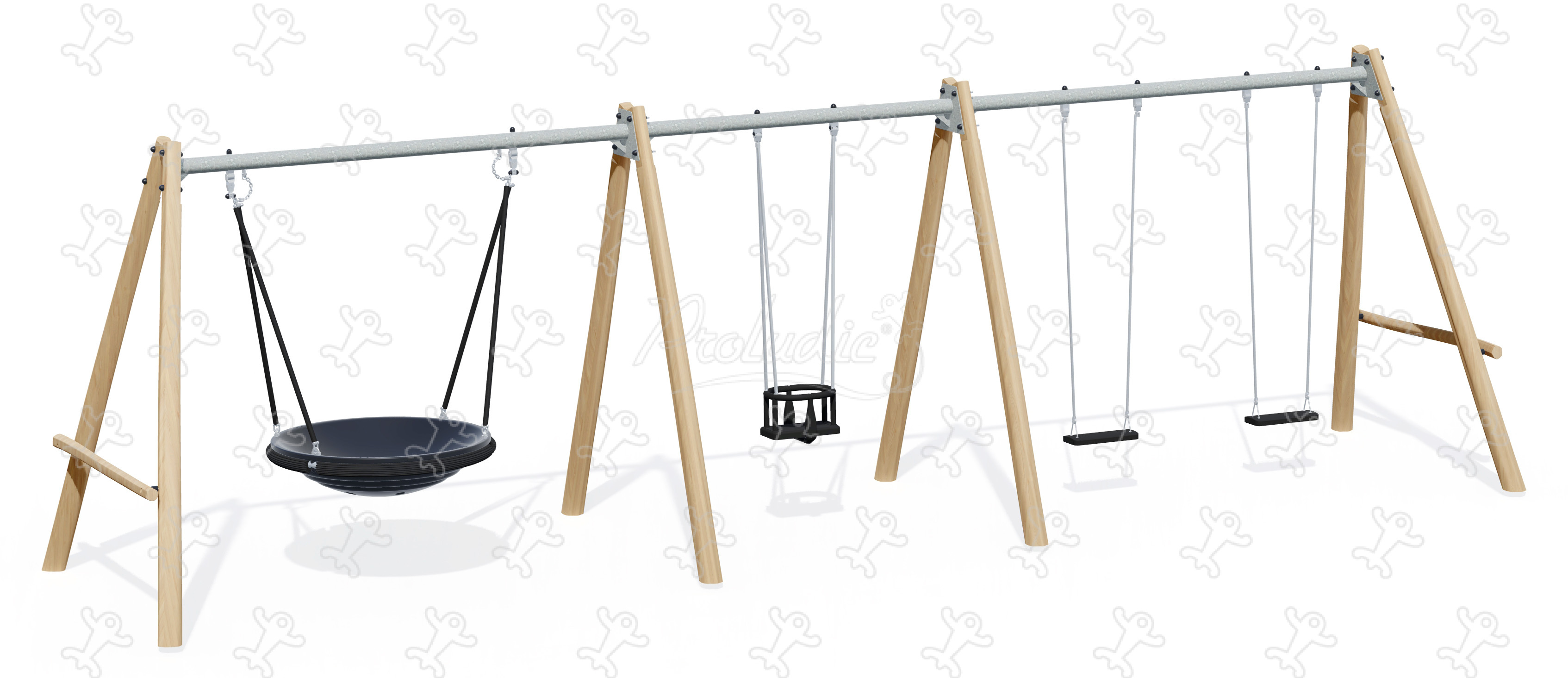 Robiniagynge med 2 flade sæder og 1 babygynge - J447