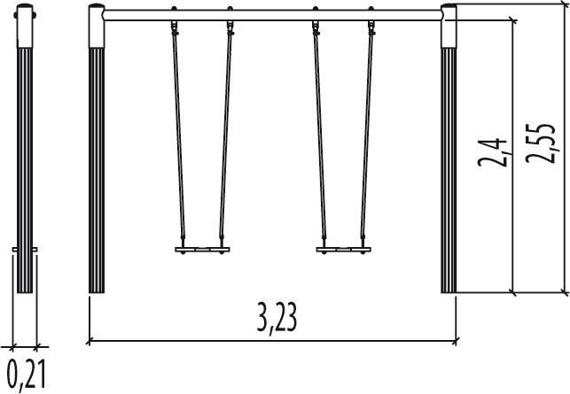 Gyngestativ uden sammenfiltring med 2 flade sæder - J478