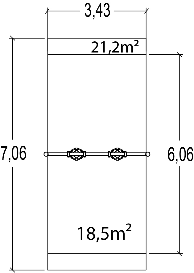 Modulets dimensioner er som følger: 3,23 m i længden, 0,37 m bred, 2,14 m høj. Den frie faldhøjde (HCL) er 1,20 m.