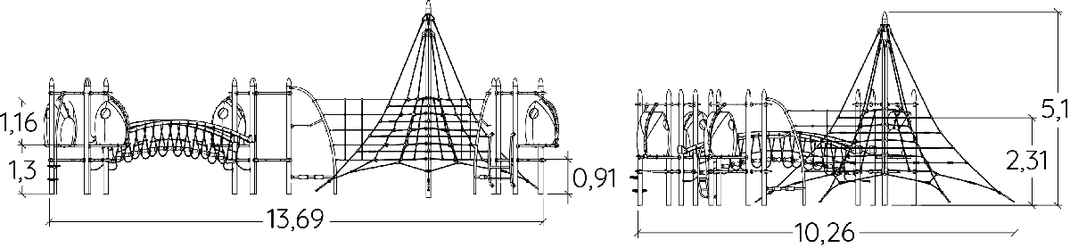 Edderkoppespindspyramide til udendørs legepladser med forhindringsbane - J4800