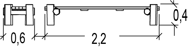 Modulets dimensioner er som følger: 2,20 m i længden, 0,60 m bred, 0,40 m høj. Den frie faldhøjde (HCL) er 0,60 m.