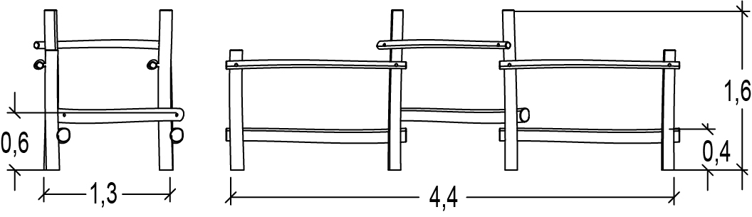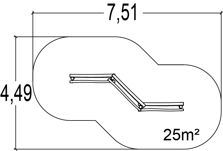 Modulets dimensioner er som følger: 4,40 m i længden, 1,30 m bred, 1,60 m høj. Den frie faldhøjde (HCL) er 0,60 m.