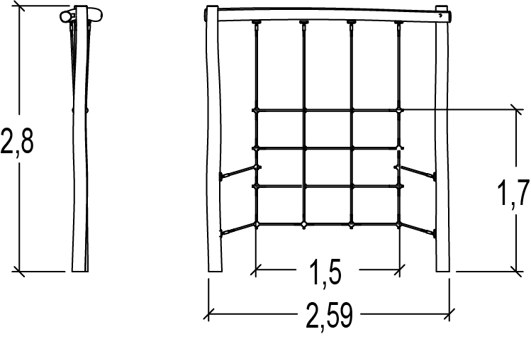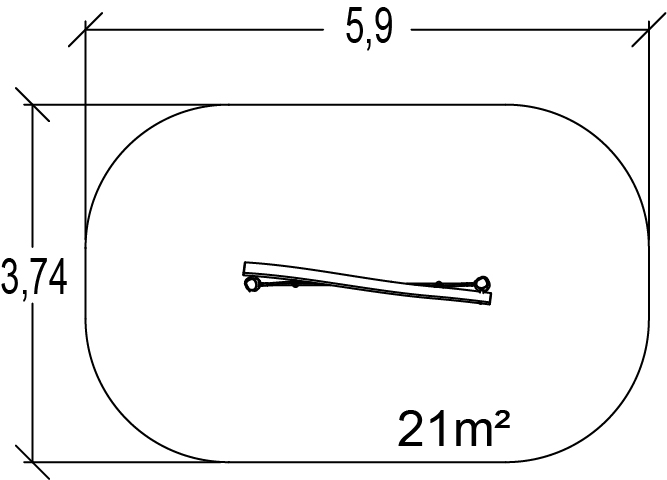 Modulets dimensioner er som følger: 2,59 m i længden, 0,44 m bred, 2,80 m høj. Den frie faldhøjde (HCL) er 1,70 m.