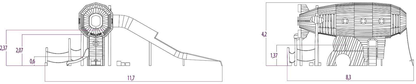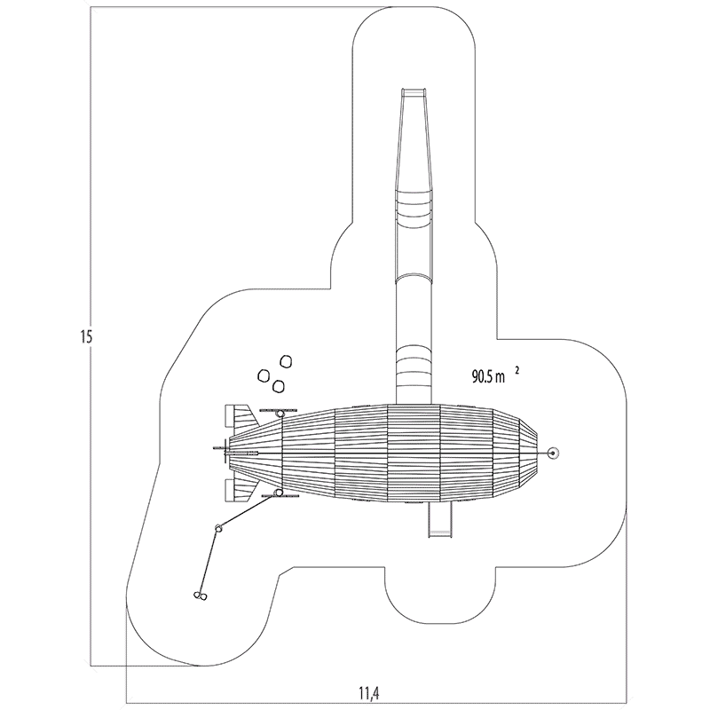 Modulets dimensioner er som følger: 11,70 m i længden, 8,30 m bred, 4,20 m høj. Den frie faldhøjde (HCL) er 1,50 m.