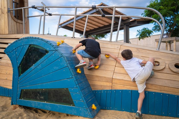 Undervands-inspireret multifunktionel trækonstruktion med rutsjebane – Ubåd - J49139®