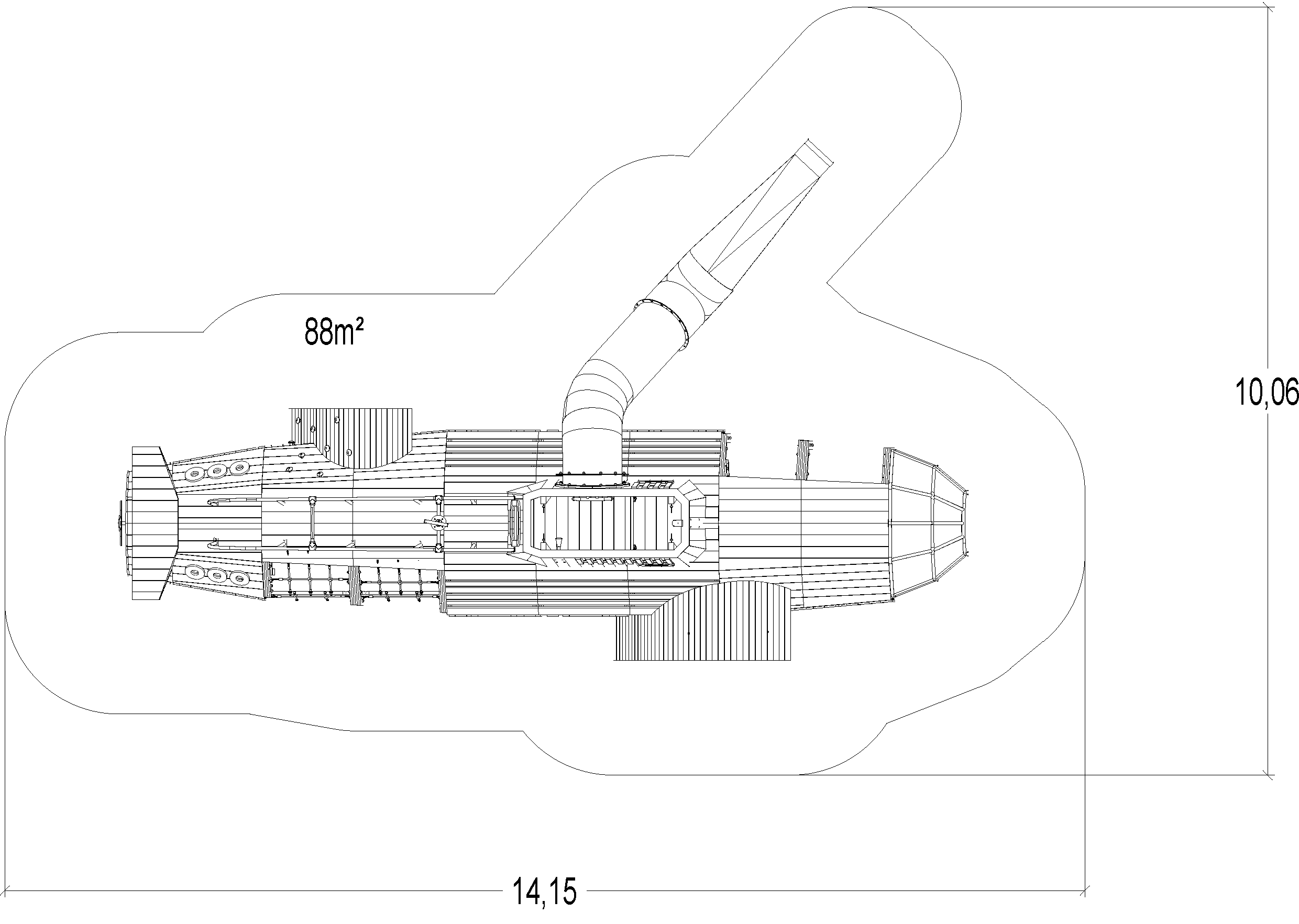 Modulets dimensioner er som følger: 11,15 m i længden, 6,84 m bred, 3,87 m høj. Den frie faldhøjde (HCL) er 1,70 m.