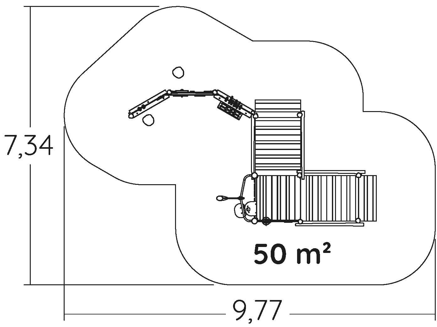 Modulets dimensioner er som følger: 6,56 m i længden, 4,20 m bred, 2,60 m høj. Den frie faldhøjde (HCL) er 0,60 m.