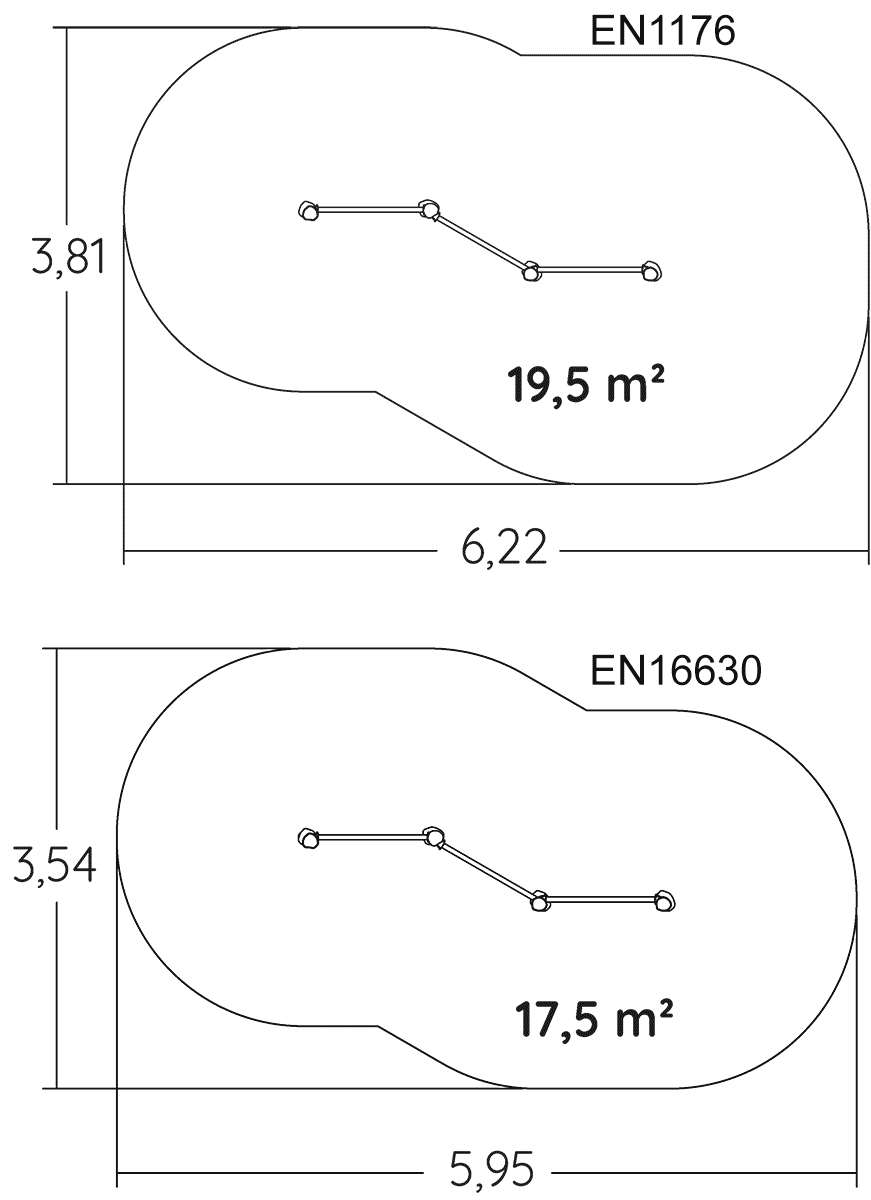 Modulets dimensioner er som følger: 3,03 m i længden, 0,67 m bred, 2,00 m høj. Den frie faldhøjde (HCL) er 1,90 m.