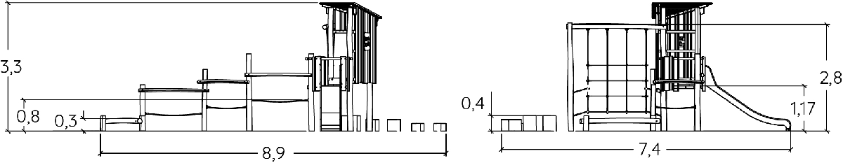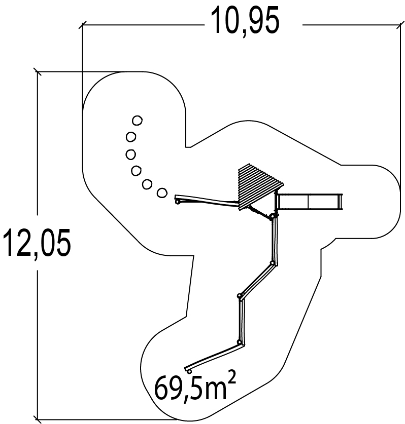 Modulets dimensioner er som følger: 7,40 m i længden, 8,90 m bred, 3,30 m høj. Den frie faldhøjde (HCL) er 1,70 m.