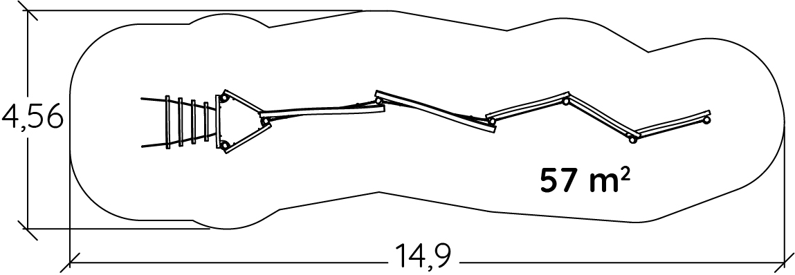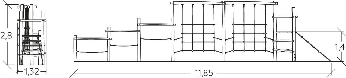 Modulets dimensioner er som følger: 1,32 m i længden, 11,85 m bred, 2,80 m høj. Den frie faldhøjde (HCL) er 1,70 m.