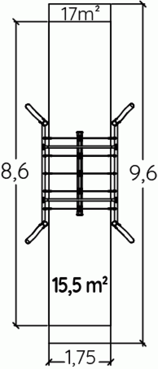 Modulets dimensioner er som følger: 3,06 m i længden, 3,94 m bred, 3,94 m høj. Den frie faldhøjde (HCL) er 1,50 m.