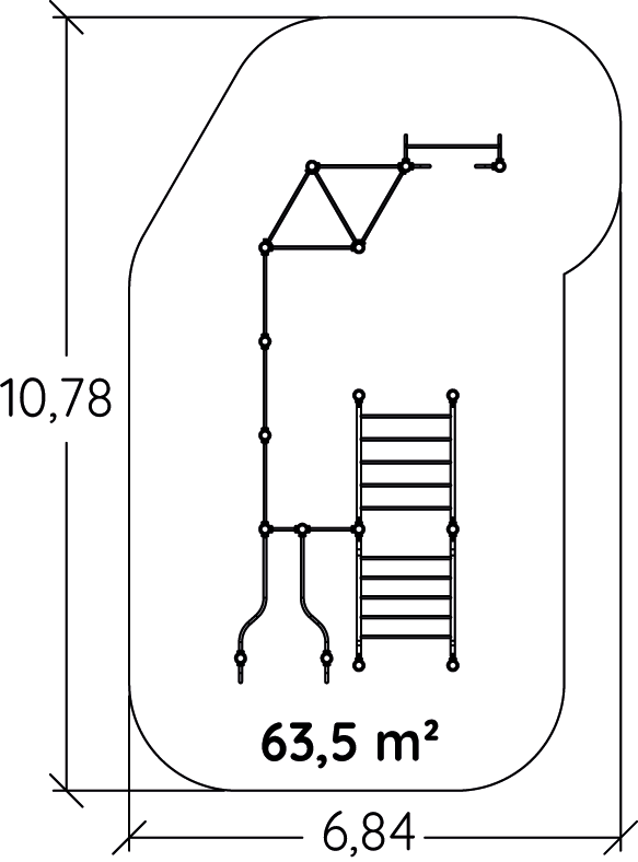 Modulets dimensioner er som følger: 7,64 m i længden, 3,76 m bred, 3,02 m høj. Den frie faldhøjde (HCL) er 1,70 m.