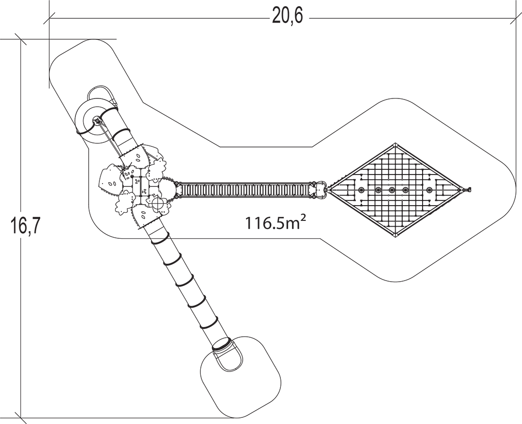 Tårn med klatreudvidelse - Kæmpe legetårn med reb-legeaktiviteter, rutsjebaner og rebro - J56105
