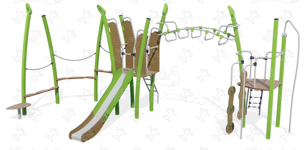 Multilegeplads med klatreaktiviteter, balancebane og rutsjebane, 18 brugere - J5618®
